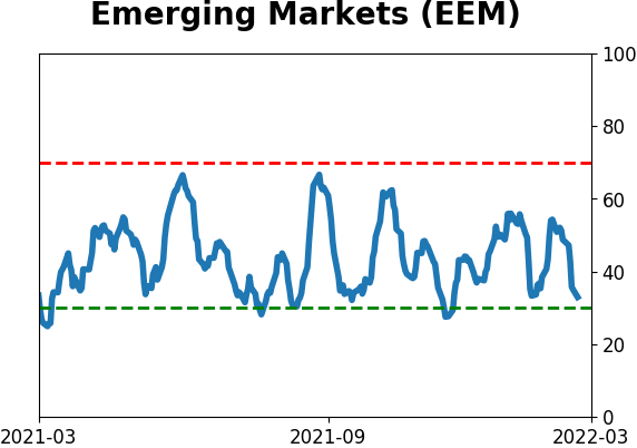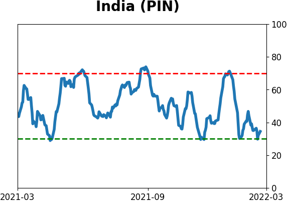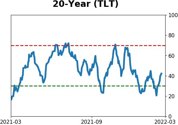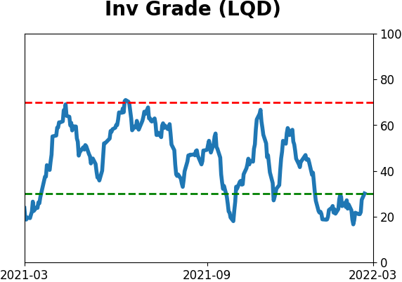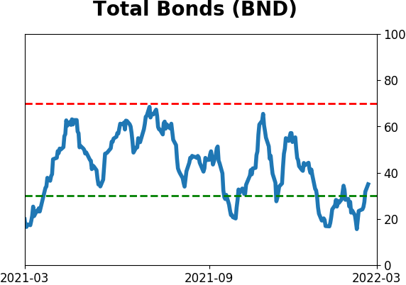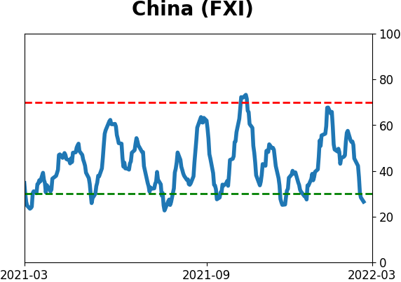 With a typical time frame of several months in this account, I normally don't make changes so quickly. I've added back part of the stock exposure I took off earlier in January due to the washed-out conditions and extreme pessimism we're seeing across a wide array of metrics. The biggest issue is that the environment is unhealthy and we could be in the throes of a protracted bear market. Even so, the readings we've seen recently have a good record at preceding relief rallies, so we'll have to see how that pans out. Bond sentiment is trying to recover from a recent bout of pessimism, and gold stocks are doing their thing which is not much at all. They've been flat for six months. Chinese tech stocks were doing exactly what they're supposed to do, then did *not* by plunging to new lows. This is troubling on a shorter-term time frame, but this was never meant for a trade, rather a multi-year investment. Recent behavior is troubling and I will not be adding any exposure as long as that's the case. RETURN YTD: +0.1% 2021: +8.7%, 2020: +8.1%, 2019: +12.6%, 2018: +0.6%, 2017: +3.8%, 2016: +17.1%, 2015: +9.2%, 2014: +14.5%, 2013: +2.2%, 2012: +10.8%, 2011: +16.5%, 2010: +15.3%, 2009: +23.9%, 2008: +16.2%, 2007: +7.8%