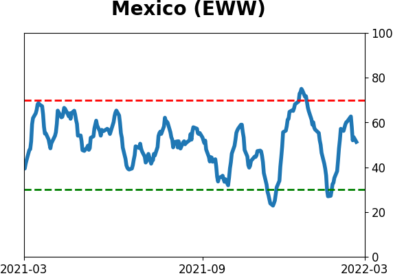 Country ETF's - 10-Day Moving Average